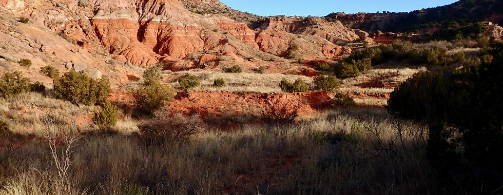 After just a few more miles, I made it to Palo Duro Canyon State Park. Palo Duro Canyon is the second largest canyon in the United States. Now, it's a far cry from the Grand Canyon, but quite impressive in its own right. I found my campsite, and changed for a bit of a hike as it was around 70F out, and that's what I had been looking for. A lovely hike to end the day, then a chat with some folks that were hanging out in their Earth Roamer at the park for the weekend.