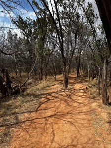 After a friend of mine, Jim, suggested I pop over to Palo Duro canyon near the end of 2022, I did head over, and realized I would like to spend more time. So, a plan emerged, and I booked a week down in the canyon (March 19-25, 2023), AND Jim came out to meet me for a few days during the trip. It was both great to get back to the canyon, it was also great to spend time with a friend I don't get to see often enough. On the first day, however, I had other friends around camp as I tried to get situated (and setup this fancy Gazelle contraption for Jim). A couple pics of the turkeys, Jim, and a trail or two not far from camp.
