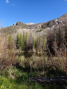 I had planned on two nights, but after such a great first night and next morning, I knew everything else would be downhill. Got to camp, and really it was just seeing one nice camp spot after another, and finally deciding I wouldn't find one [much] better. Had I gone another 1/2 mile up the road, there were one or two others I might have preferred, but my spot was great! If you look closely, you can see my tent in the first (upper left) picture, the rest were taken while walking around the camp area when I got in Saturday afternoon.